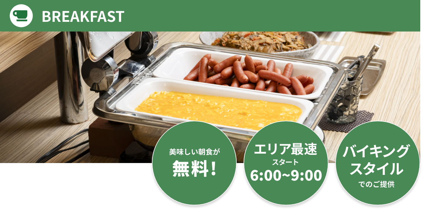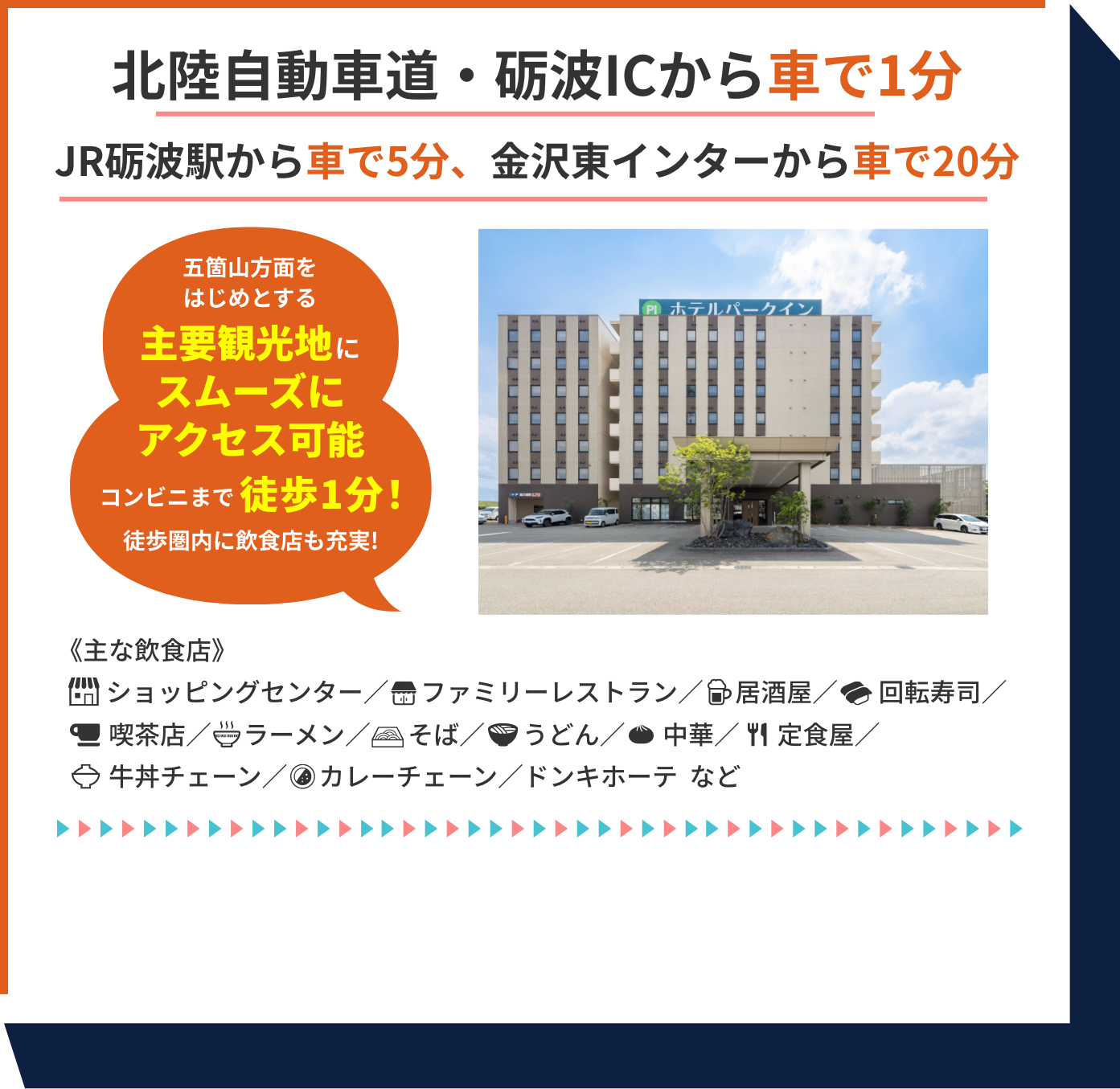 朝食無料のホテルパークイン砺波インター、ビジネス・観光でのご利用に最適です。